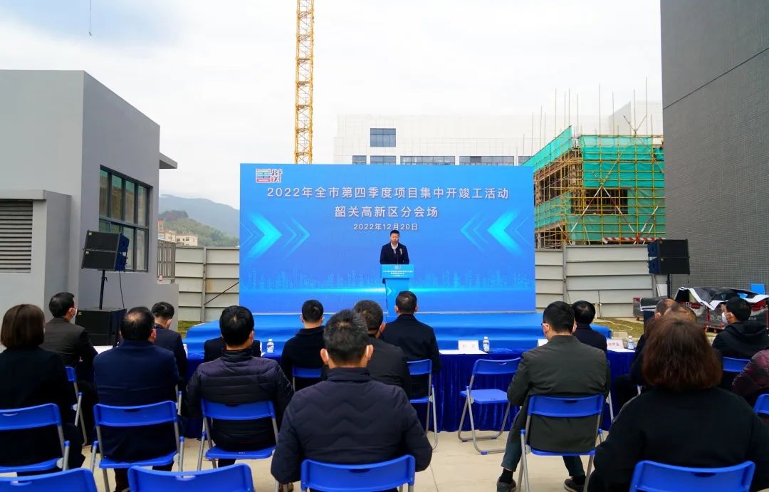 12月20日上午,韶关市举行第四季度项目集中开竣工活动,韶关高新区同步举行第四季度项目集中开竣工暨韶关高新区标准厂房及配套设施建设项目(二期)启动仪式。韶关高新区管委会班子成员,华南装备园管委会有关领导,高新区管委会四级调研员以上干部及各局(室)、直属单位负责人,韶实集团班子成员及部门总监等参加仪式。韶关高新区管理委员会主任石文向韶关主会场汇报了参加前八次项目和第四季度项目集中开竣工情况。